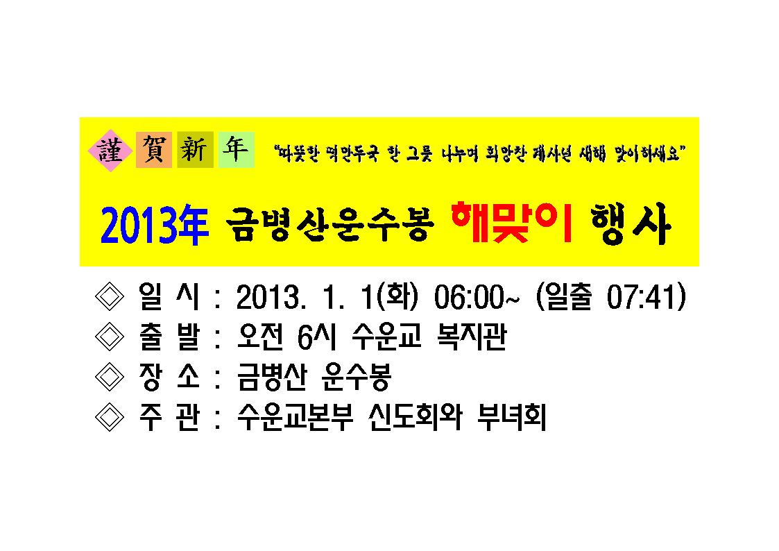 ¢À ÀϽà : 2013. 1. 1(È) 06:00 ¼ö¿îº¹Áö°ü Áý°á Ãâ¹ß~